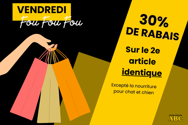 En prime : jusqu’à 30 % de rabais sur le 2e article identique (sauf nourriture pour chat et chien).