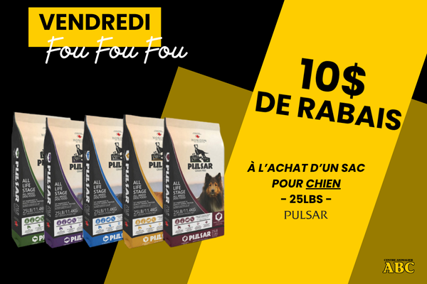 ✅10$ de rabais sur les gros format de nourriture pour chien Pulsar